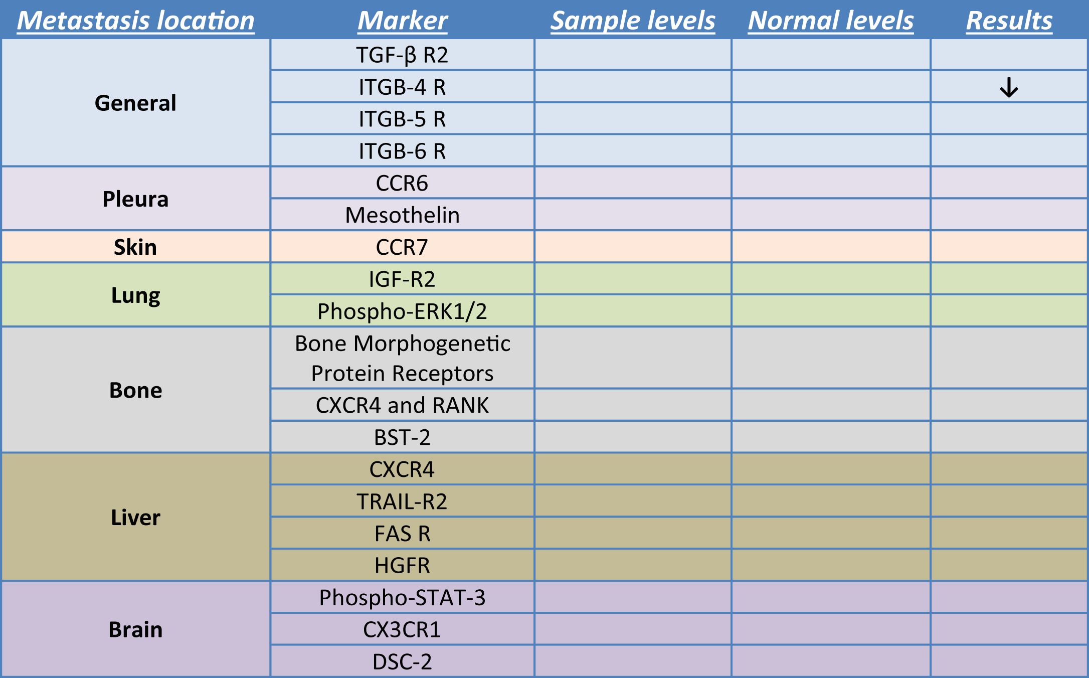 The Metastat Profile is a collection of specific markers that are detected in specific organs. Primary tumor cells that have the ability to metastasize will express specific genes and proteins according to the organ that will metastasize, and this is given by genetic information.